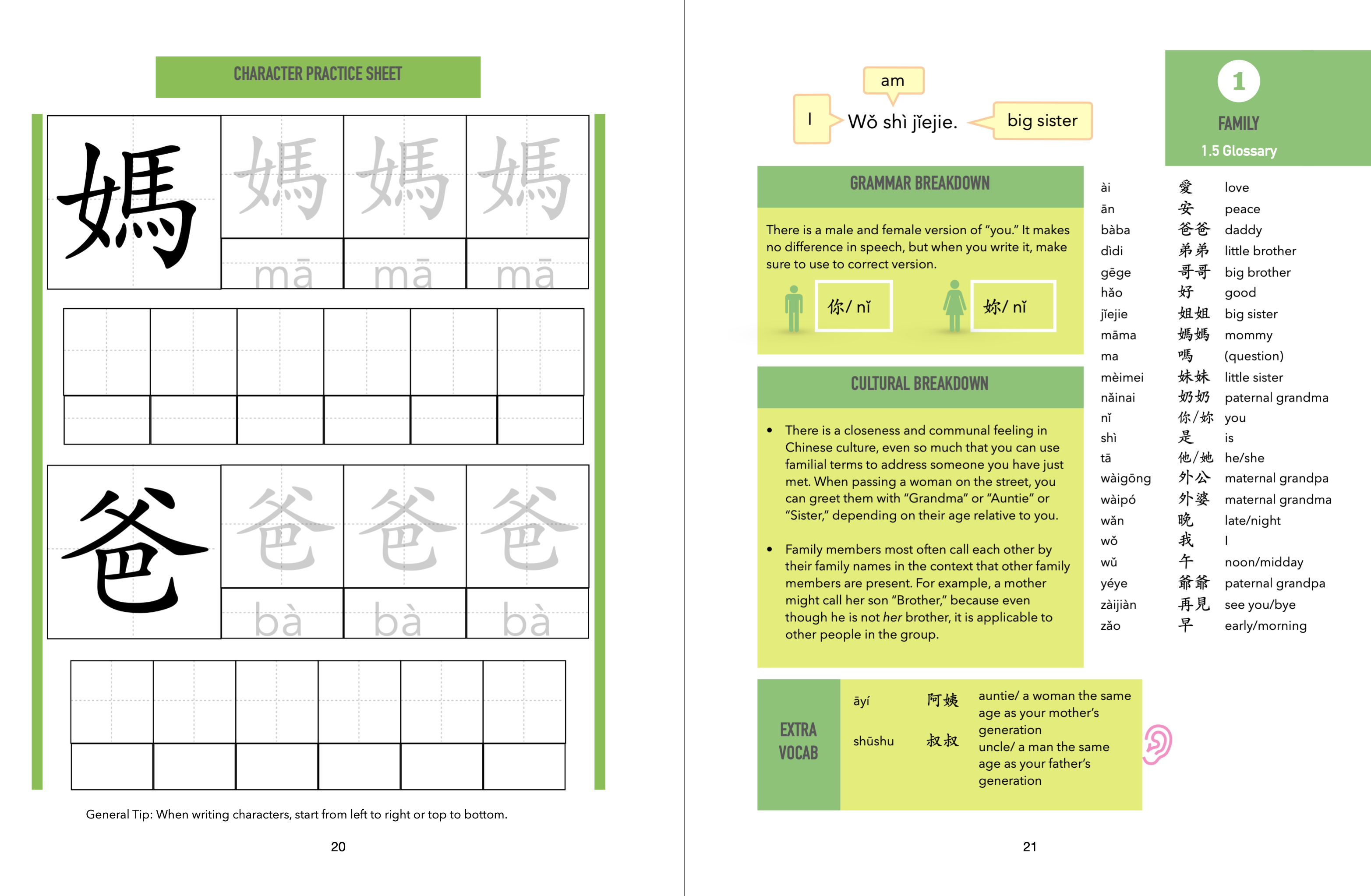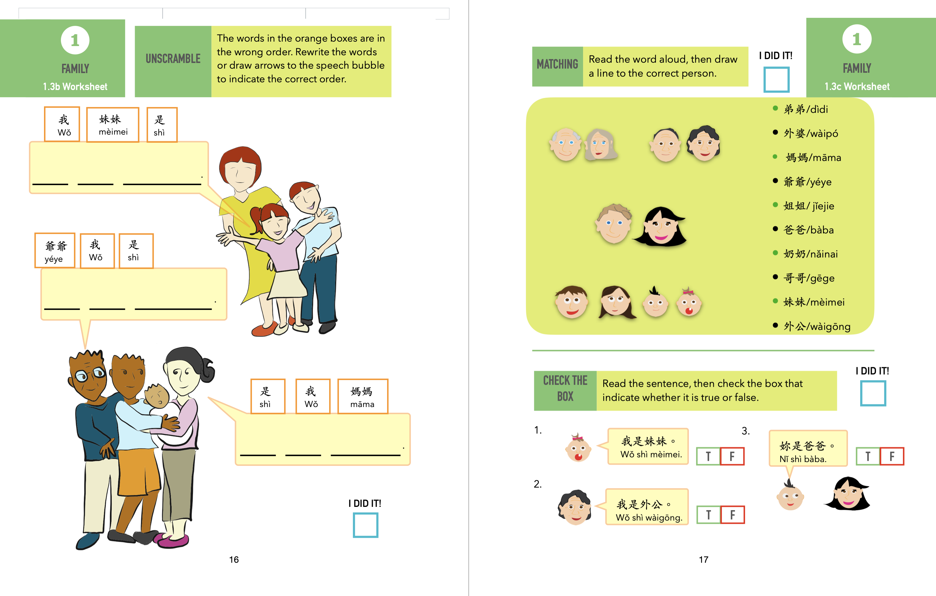 The very first buyers of Tiny Chinese Homeschool Vol. 1 have given me great feedback. Some have said how invaluable the audio has been. Others have complimented the artwork and structure. There was one piece of feedback that really hit a chord with me, and it was from a friend with no previous Chinese experience. She said, “We tried to introduce our child to Chapter 1 today and only got to one page. The material on there is packed!” At the time, I interpreted it as the book being well worth the price because there was so much to learn on one page. As time went on, I’ve thought back and realized the density of information could make it less approachable to new learners and especially young children, the very people this book was made for.
