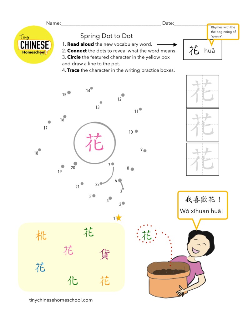 Spring Dot to Dot: Learn a new spring-themed vocabulary word with several easy activities combined on one page.