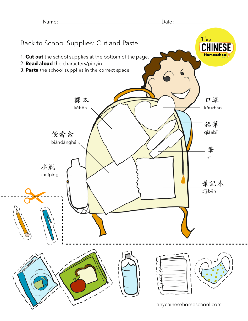 Back to School Supplies: Cut and Paste. Review the vocabulary for these common school supplies and paste the pictures onto the backpack.