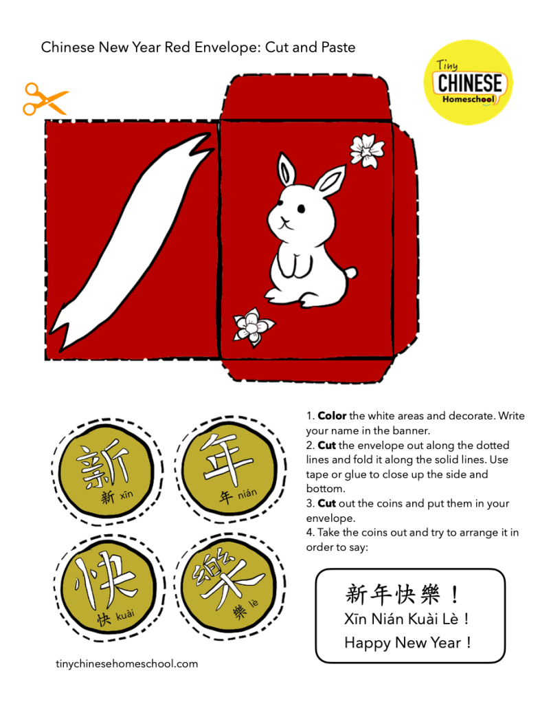 This Chinese New Year brings in the Year of the Rabbit! Here is a cute red envelope activity you can do with your kids that has cut-out coins to put inside the envelope.
